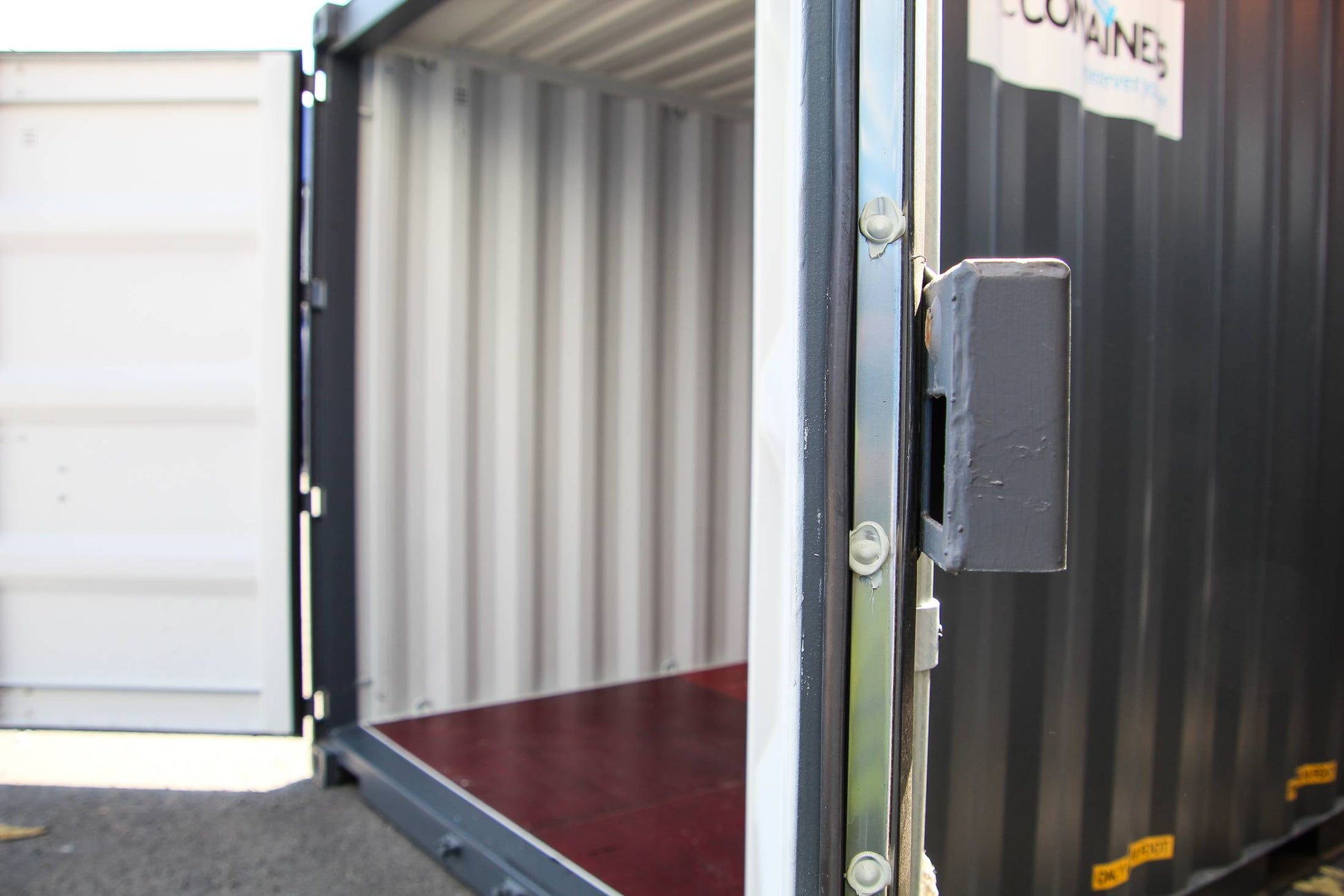 De container is voorzien van dubbele deuren met sluitstangen en een beschermende behuizing voor het slot. De container is standaard uitgerust met heftruckpaden en een duurzame 28 mm multiplex of bamboe vloer. Ventilatie wordt verzorgd door de ontluchtingsventielen van de container. De standaardkleur is elegant grafietgrijs RAL 7024.